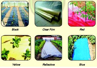 - Warna hitam akan menghalangi tumbuhnya gulma dan menjaga tanah tetap lembab. Untuk pemasangan mulsa jenis ini, biasanya sisi warna perak digunakan untuk atas dan sisi warna hitam digunakan untuk bawah.